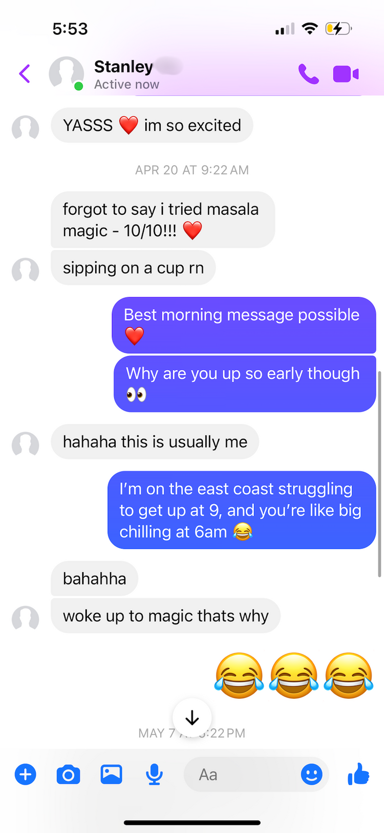 No trip to see our Nani was complete without chai. After we grew up & moved out, all of us missed the love, connection, and conversations that came with every cup she brewed. At Masala Magic, we’re on a mission to bring everyone that sense of community through authentic, flavorful experiences that taste like home.